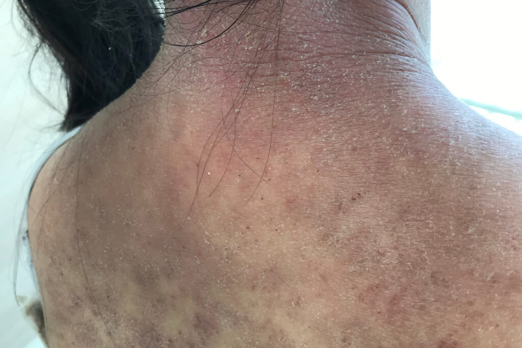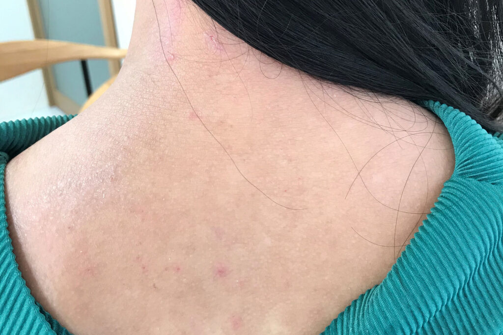 極度のアトピー性皮膚炎に悩まれていた方。1回目の施術後は、ターンオーバーが促進され、一時的に皮むけの症状が強く出ましたが、2回目以降、アトピー性皮膚炎の症状が緩和されていきました。