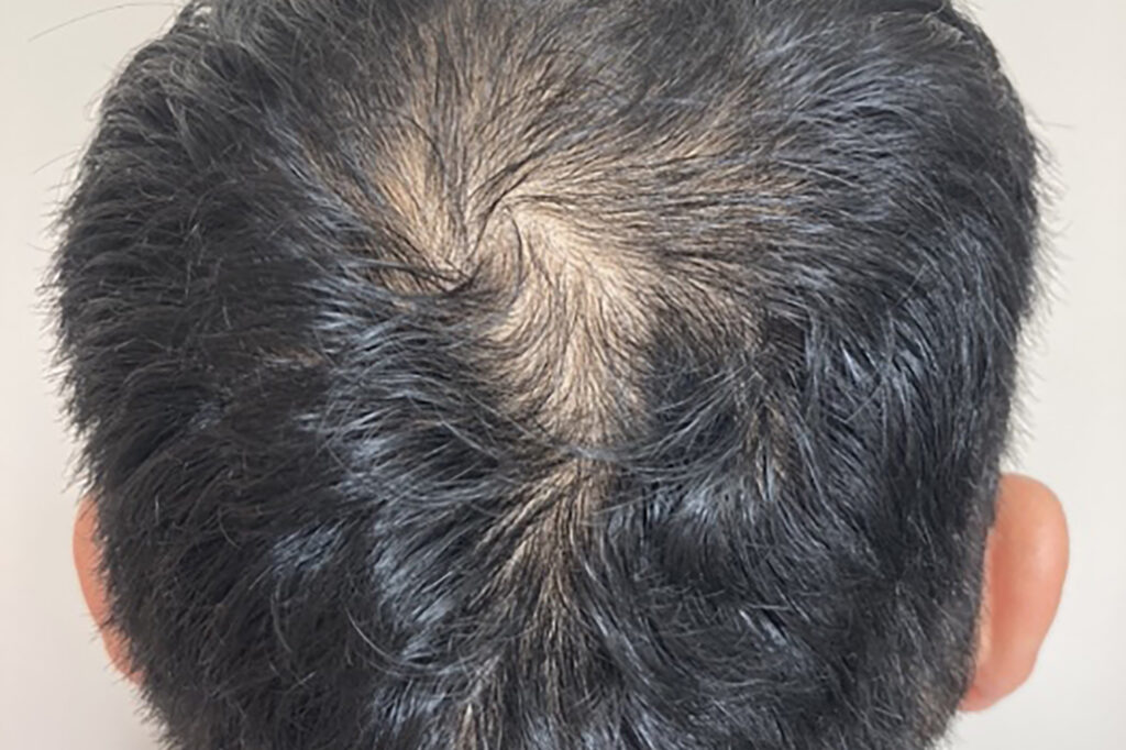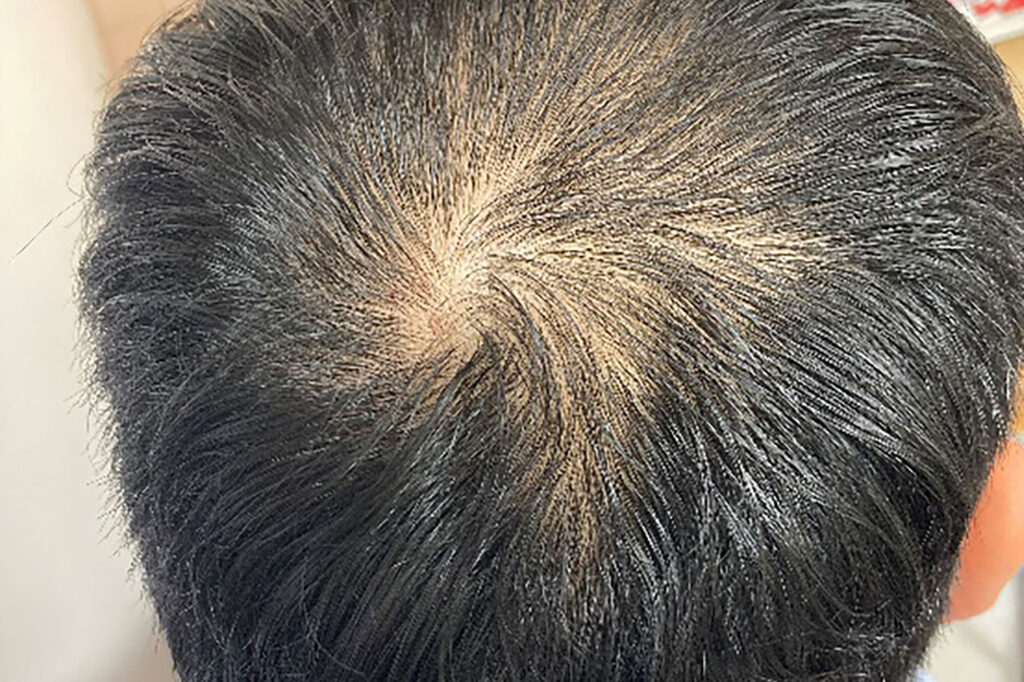 頭頂部の薄毛を気にされており、当初は上清液を局所注射して現状維持の状態であったが、新たにミノキシジルを